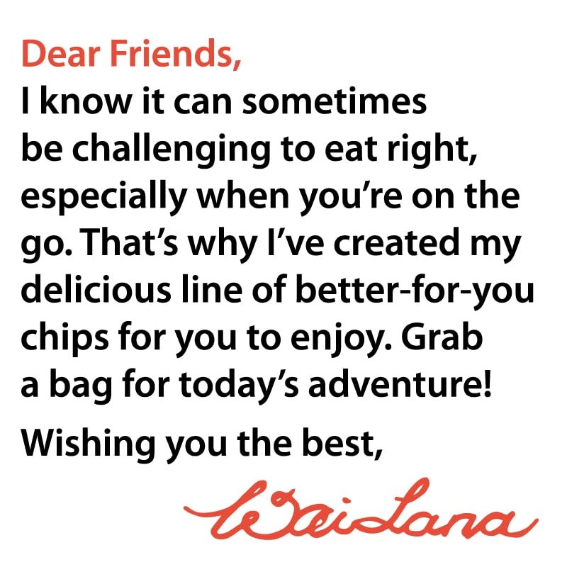 For chip lovers, Wai Lana's unique cassava-based chips have **30% less fat**