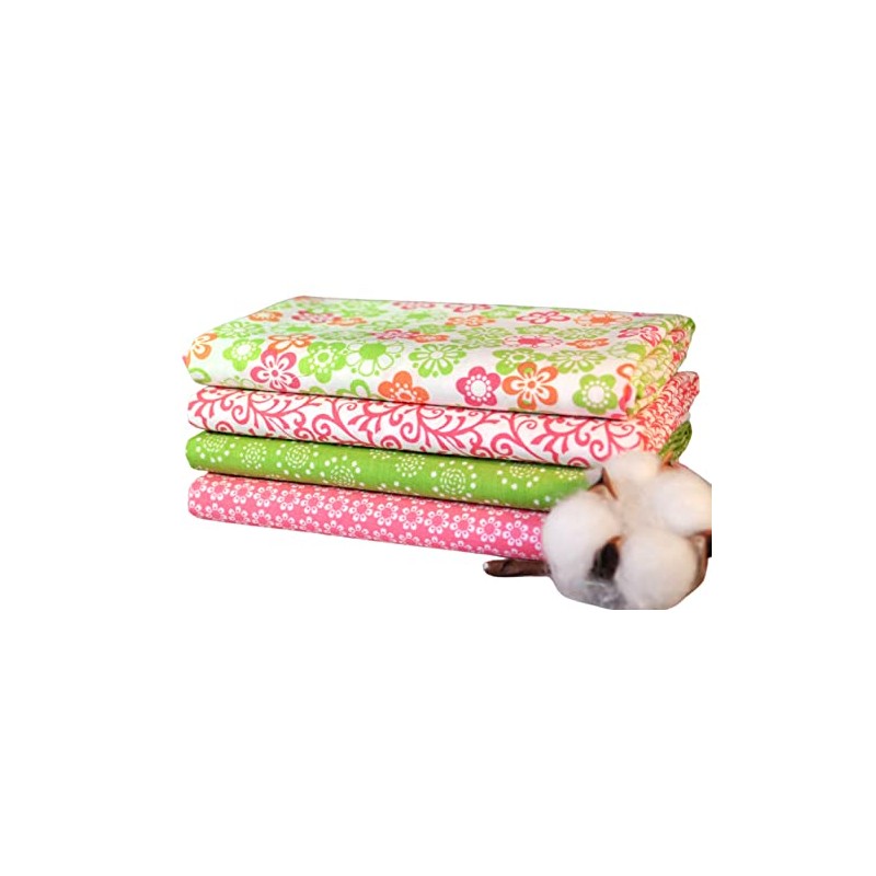 Lime Green and Pink 4 Fat Quarters Bundle, 100% Cotton, 1 Yard Total