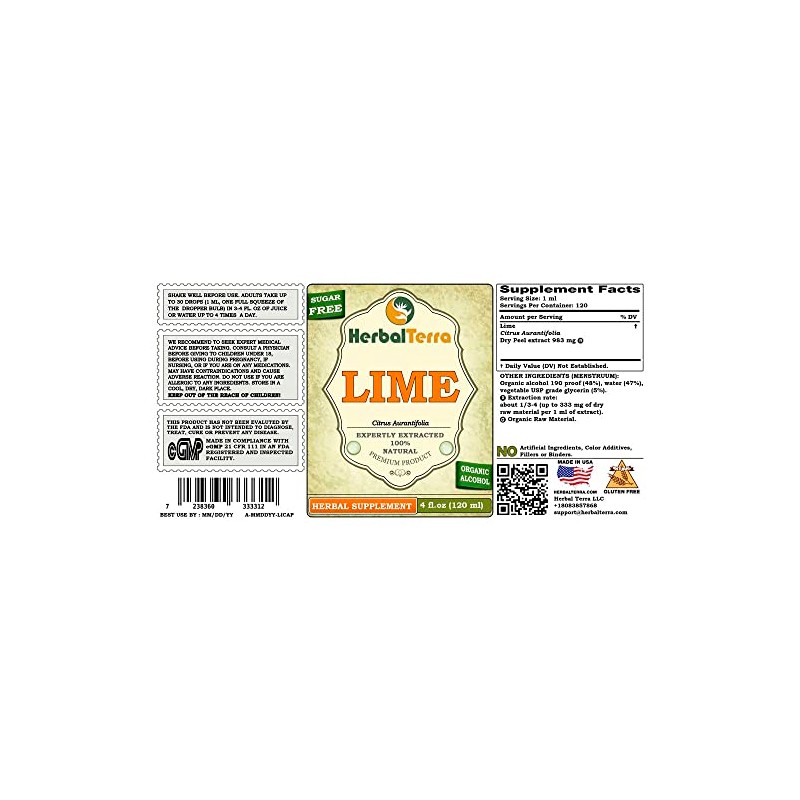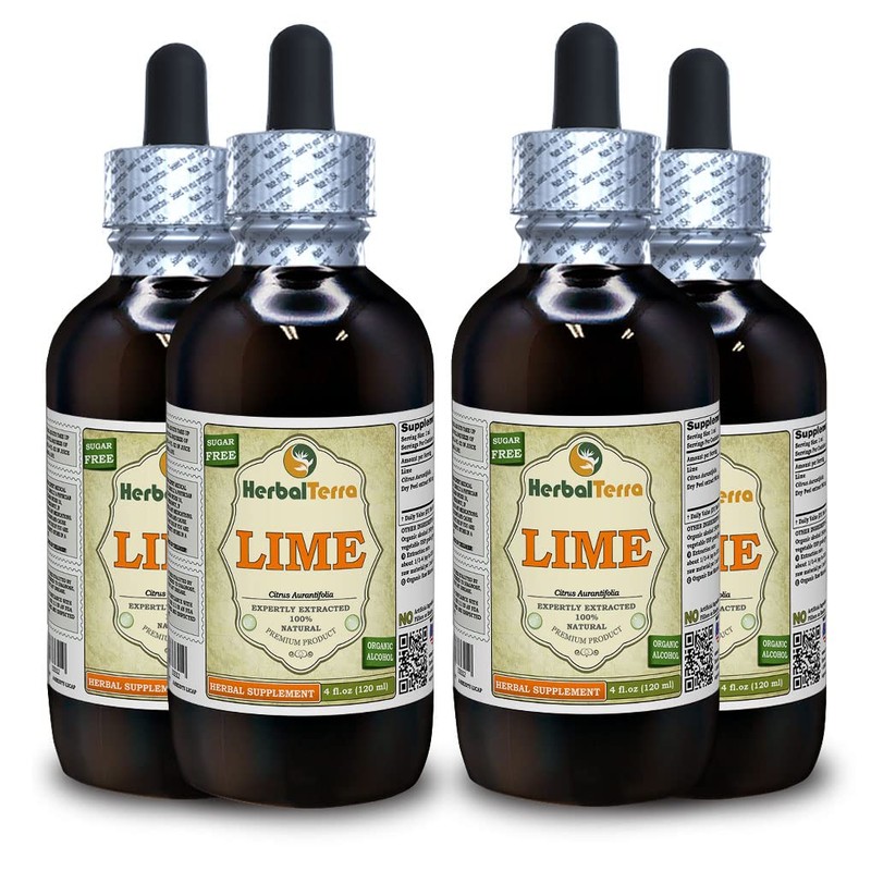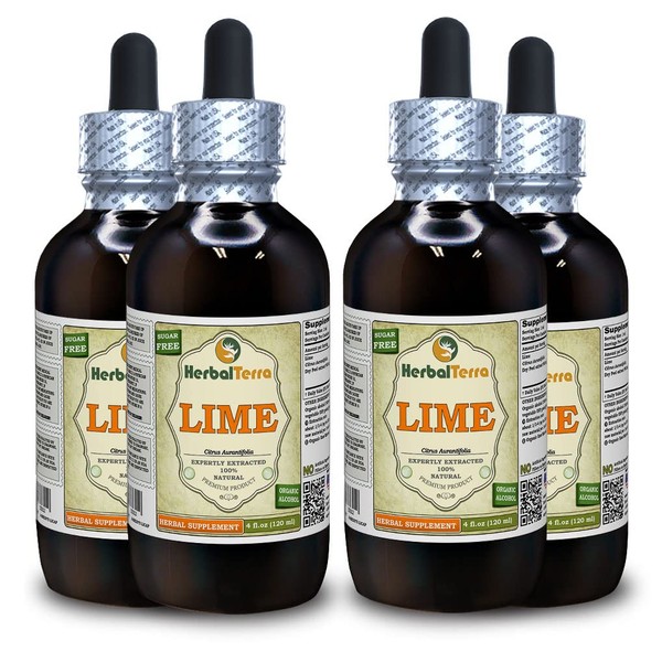 Lime (Key Lime Aurantifolia) Tincture, Organic Dried Peel Liquid Extract (Brand Name: HerbalTerra, Proudly Made in USA) 4x4 fl.oz (4x120 ml)