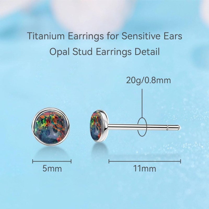 Limerencia G23 Pure Titanium Hypoallergenic Earrings | Minimalist Opal Stud Earrings | F136 Implant Grade | Suitable for Sensitive Ears Delicate Jewelry (5mm, Opal A6)