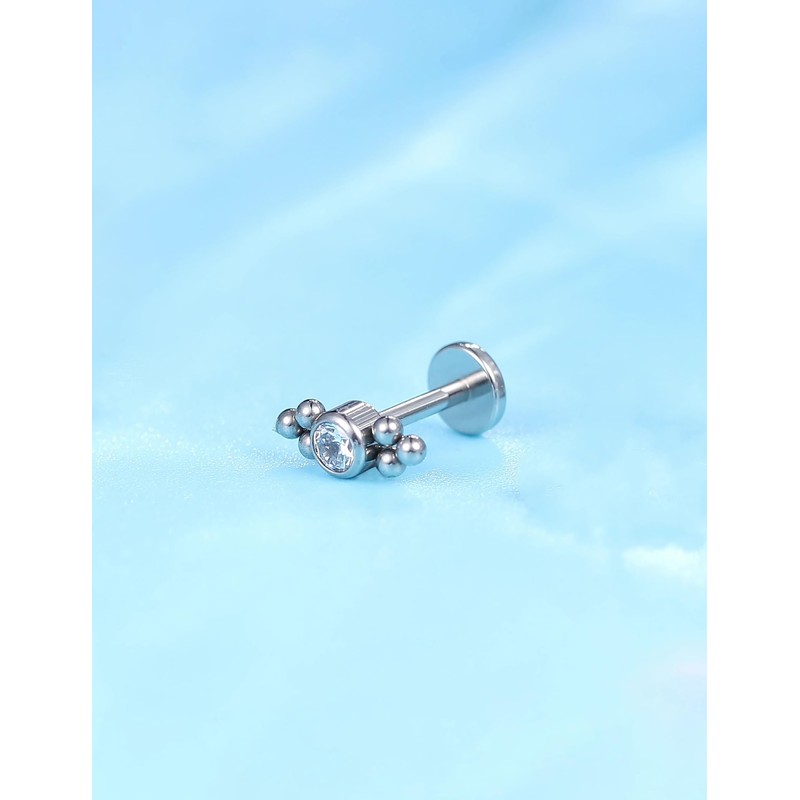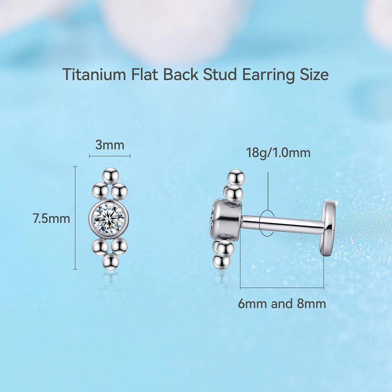 limerencia Hypoallergenic Flat Back Stud Earrings for Women 18g 20g Titanium G23 Implant Quality Post Earrings Cartilage Helix No Thread Titanium Cubic Zirconia, Titanium, Zircon