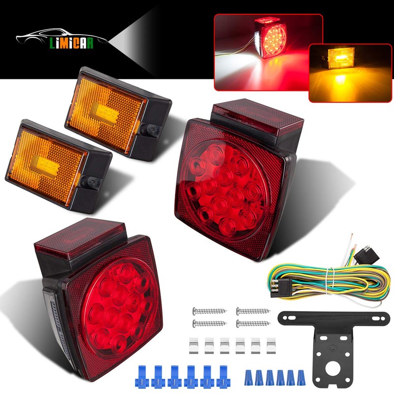 LIMICAR LED Trailer Lights Wire Kit, Submersible Trailer Tail Lights with Amber Marker Lights Trailer Wiring Kit License Plate Bracket, Trailer LED Lights for Truck Boat Trailer RV Marine Under 80"