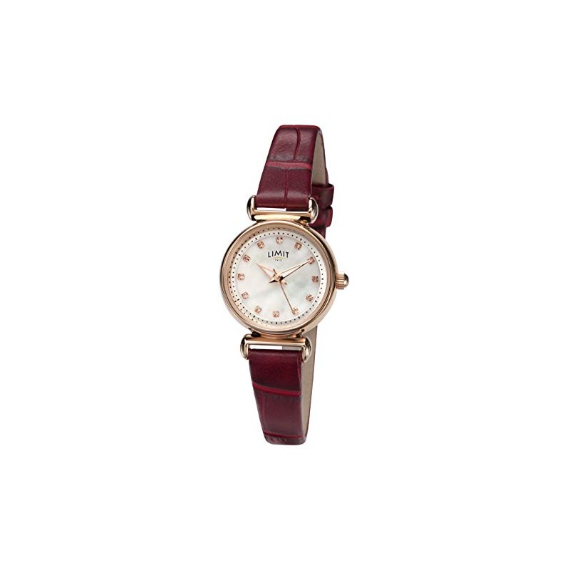 Limit Ladies 23m Classic Rose Gold Case Mother of Pearl Dial Croco Textured Red PU Strap Watch 60043