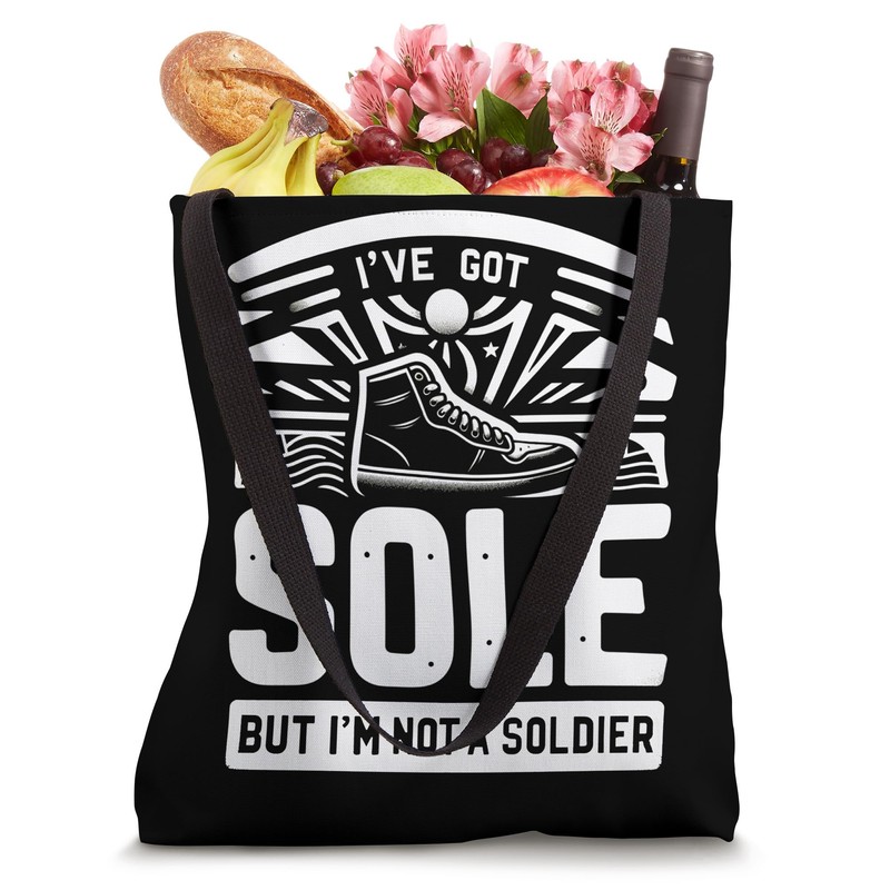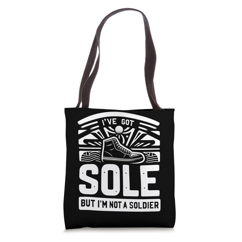 - Elevate your shoe collection game with our 'I've Got Sole, But I'm Not a Soldier' design. It's the ideal addition to your wardrobe, letting you flaunt your love for shoes in a unique and fashionable way.