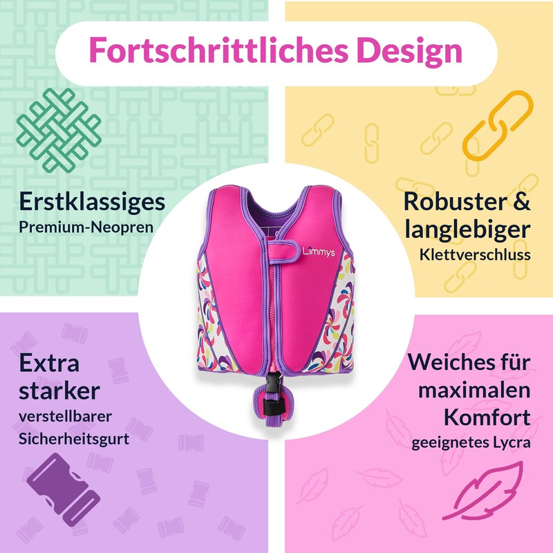 - INVEST IN A TOP PRODUCT BECAUSE YOUR CHILD DESERVES ONLY THE BEST. Sure, our vest isn't the cheapest choice, but with its innovative design it simply offers more. You're not just buying a learning aid to swim, you're investing in your child's safety, self-confidence and enjoyment in the water. The high-quality neoprene, robust, smooth zippers and additional seams make them the most modern and well-made design on the market.
