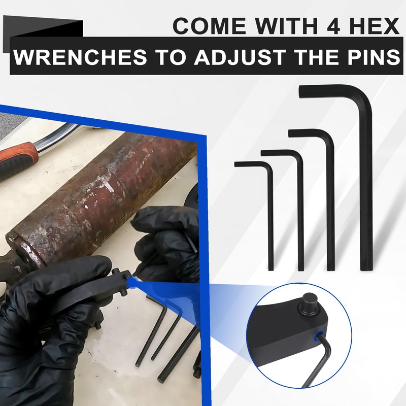 • Professional Craftsmanship -- Easy to remove stubborn gland nuts, it's the perfect hydraulic wrench set for professionals. 4 pairs of different sizes of pins, Large Pins: 1st pair = 0.265” or 0.327”, 2nd pair = 0.236” or 0.295”; Small Pins: 1st pair = 0.217” or 0.24”, 2nd pair = 0.197” or 0.228”.