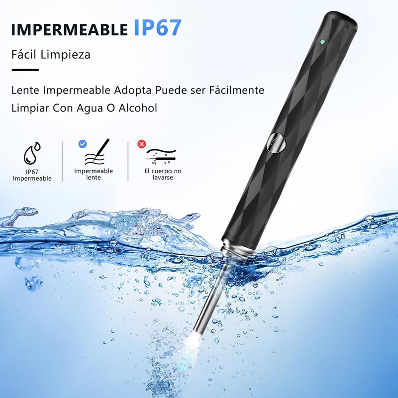 - ✨ Diseño IPX Impermeable y Fácil de Limpiar: Eliminación de Cera del Oído,Todos los recogedores de oído están hechos de acero inoxidable, a prueba de óxido, fácil de limpiar, limpiador de oidos cera con cámara fácil de desinfectar, es una herramienta de limpieza diseñada para los oídos,camara para oidos IPX7 otoscopio impermeable, no ponga todo el otoscopio en el agua.