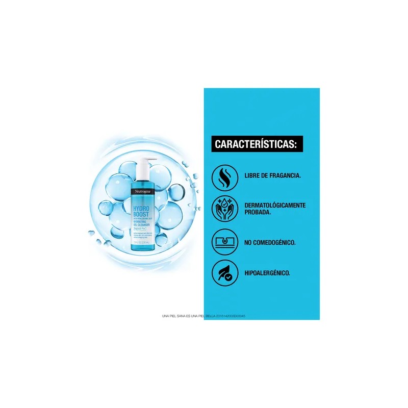 Limpiador Facial Neutrogena HydroBoost sin fragancia 230ml 7.8 oz Limpiador facial hidratante diario Neutrogena Hydro Boost para aumentar la hidratación de la piel para una piel suave y flexible.