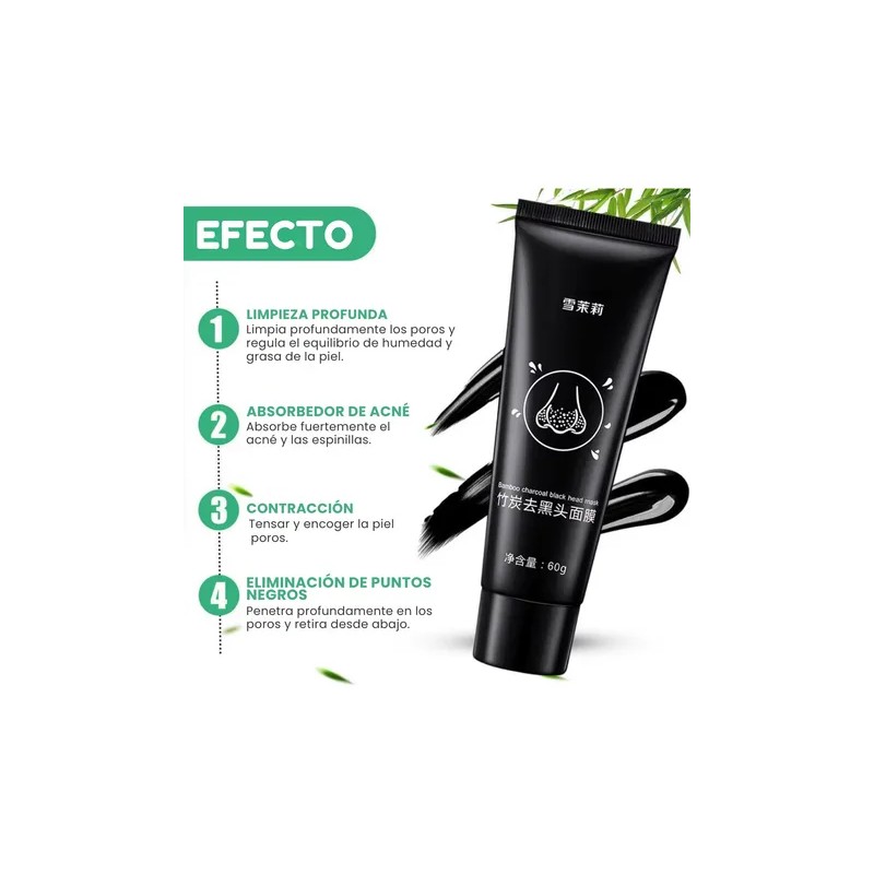 Limpieza Profunda: El producto está diseñado para una limpieza facial profunda. Eliminación de Puntos Negros: Su función principal es eliminar los puntos negros. Ingrediente Activo: Contiene carbón activado. El carbón activado es conocido por su capacidad para absorber impurezas y toxinas de la piel.