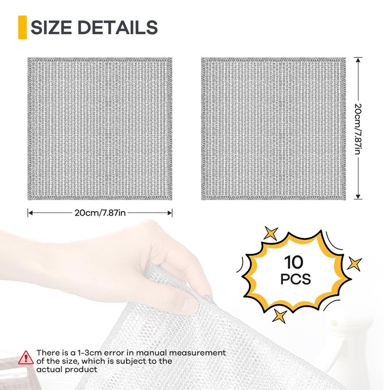 - 【Wide Application】These wire dishwashing rags are not only used to clean food and grease stains stuck to kitchen dishes and kitchen utensils, but also to clean a variety of surfaces around the house and stubborn stains, but also can also be used to scrape the outer skin of everyday ingredients.