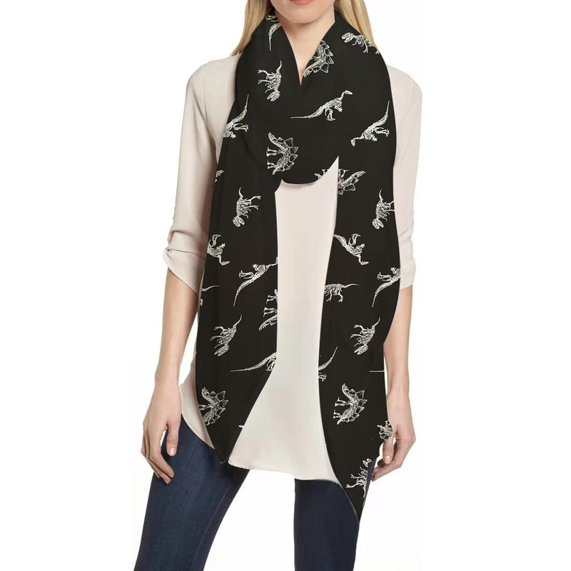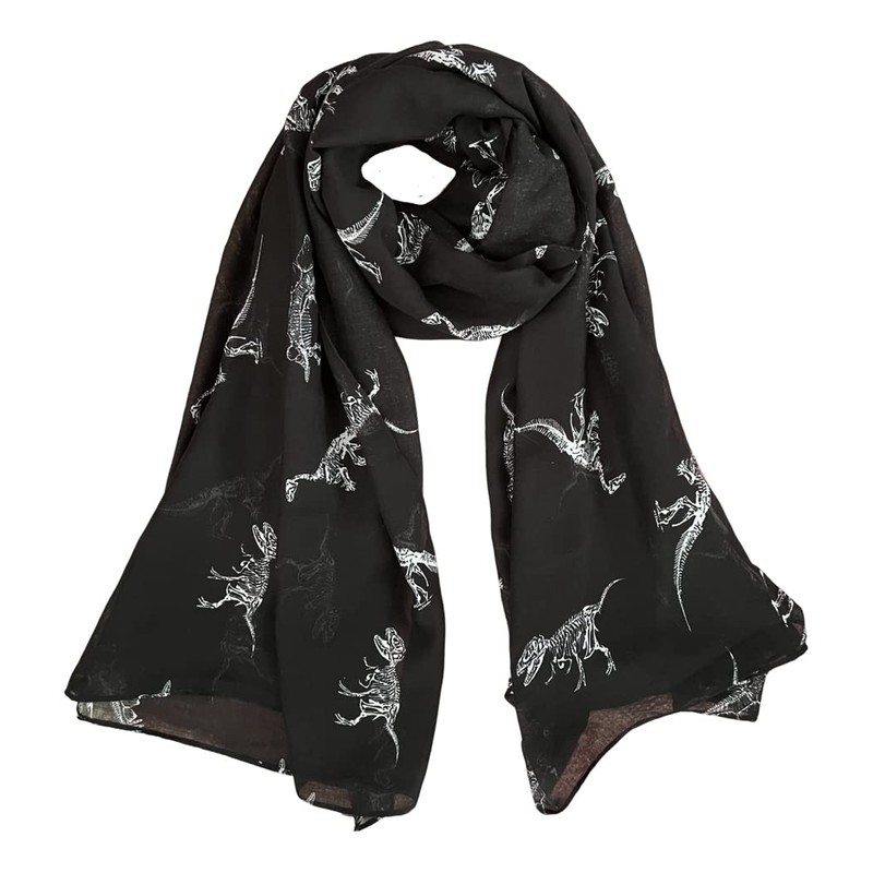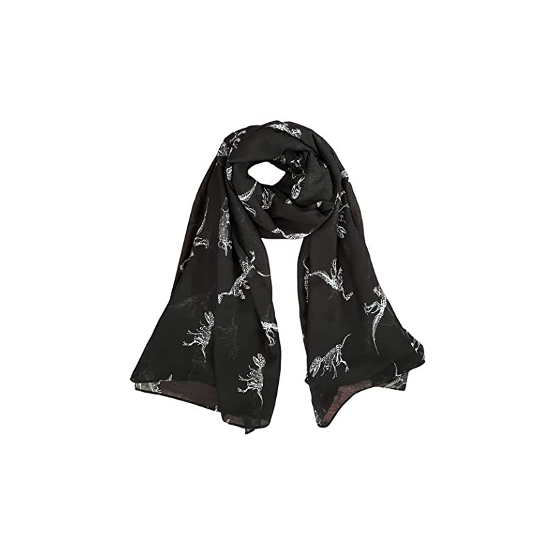 Lina & Lily Dinosaur Print Women's Scarf Shawl Wrap Lightweight (Black)