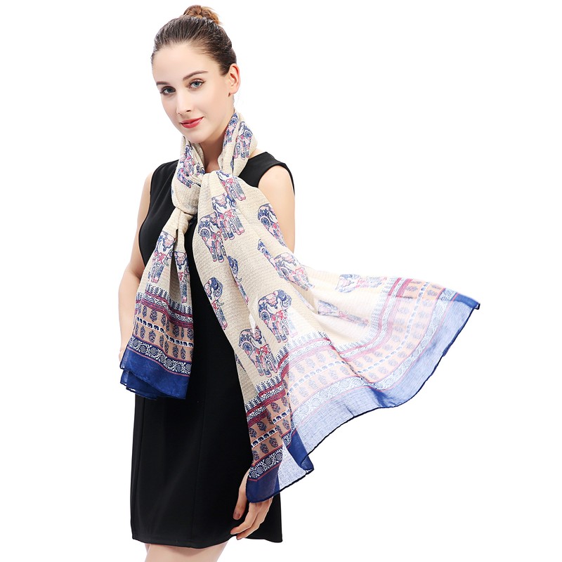The scarf is versatile and can be styled in a variety of ways - as a shawl, wrap, or even a sarong for a day at the beach. With its beautiful and cute elephant print, this scarf is sure to add a touch of whimsy and elegance to any outfit.