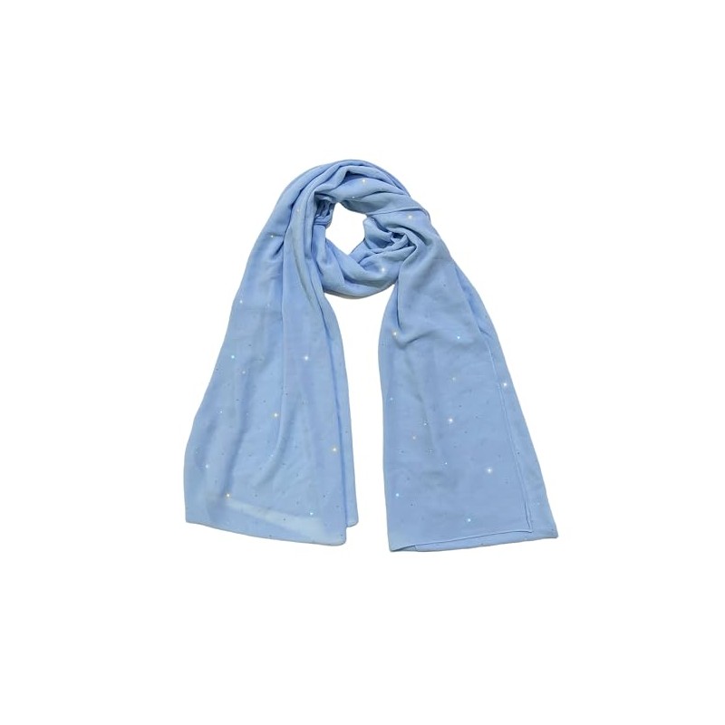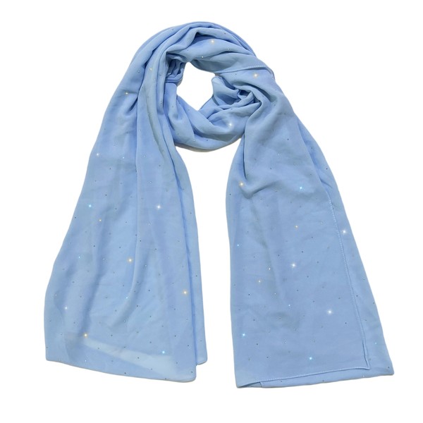 Lina & Lily Sparkle Rhinestones Women's Chiffon Scarf Shawl Head Wrap Hijab Sheer Lightweight (Baby Blue)