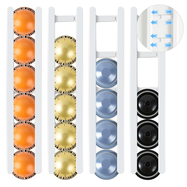 - Retractable Coffee Pod Holder for Nespresso VertuoLine/Original Pods Capsules: This 4-pack set holds up to 20 capsules, with a retractable design that adjusts to fit 1.69-2.48in width pods. Perfectly tailored for Nespresso VertuoLine Pod, it adapts to various capsule sizes for flexible storage