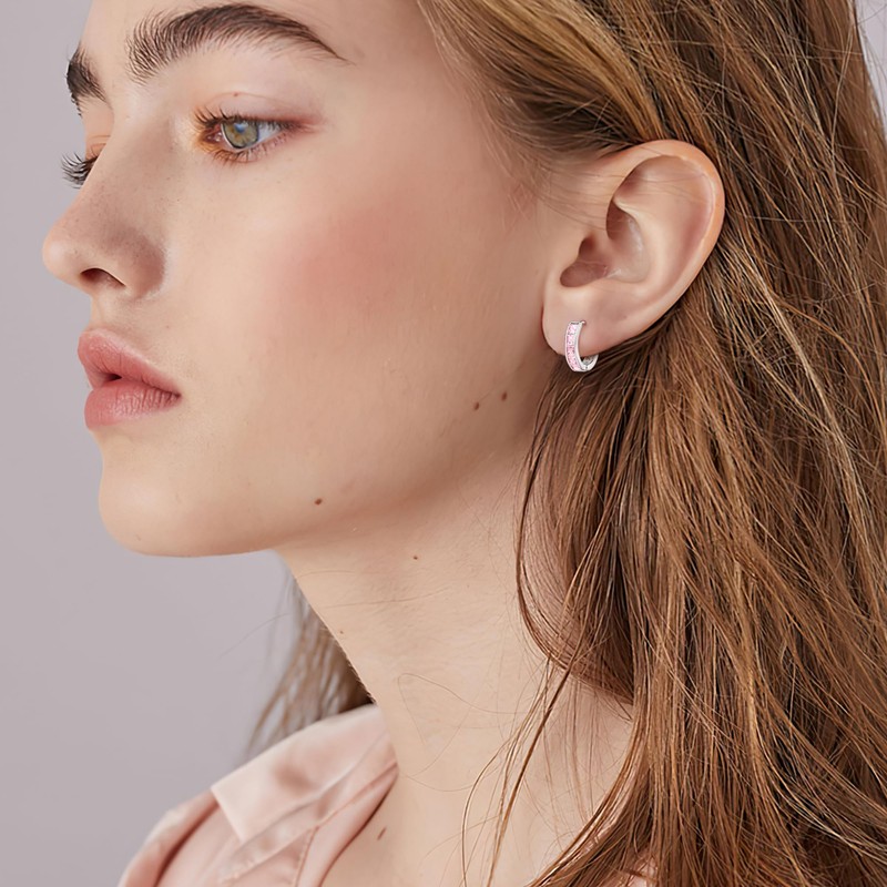 - Dainty Cubic Zirconia Earrings: Half of the Helix earring is inlaid with pink cubic zirconia stones, and the other half is delicately hand-carved. It's a small earring, but it's full of minimalist aesthetics.