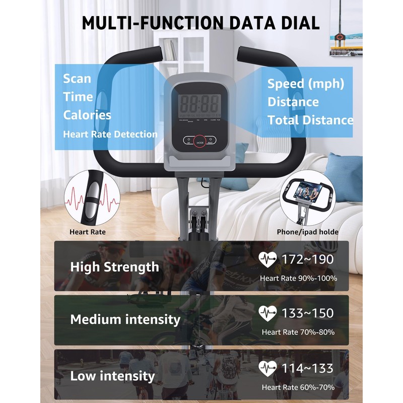 - 5-IN-1 MULTI-FUNCTIONAL EXERCISE BIKE WITH BREATHABLE SUPPORT: Transition effortlessly between three riding modes - from Upright-Competitive's cardio challenge to Semi-Recumbent's relaxed cruising and the classic Upright-Standard. Our upgraded ventilated mesh backrest elevates every position with airflow-rich comfort, offering 360° flexible support that keeps you cool during intense sessions while maintaining spinal alignment.