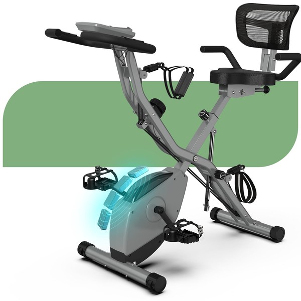LINBOLUSA Indoor Exercise Bike for Seniors, 5 IN 1 Foldable Stationary Bike with 16-Level Magnetic Resistance and Tri-Position Ride, 6.6 LBS Flywheel, Upgrade Net Backrest for Home Workout 818 Gray