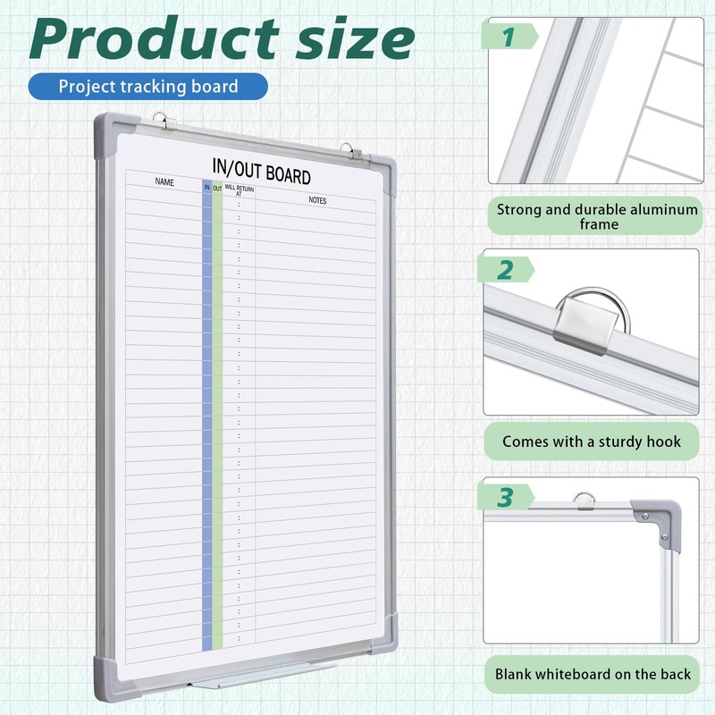 - Efficient tracking system: designed to boost office management efficiency, this in/out whiteboard features 33 clear rows to record entrants' and exits along with necessary annotations; Ideal for meeting sign-ins, visitor management, or employee attendance, ensuring smooth and streamlined operations