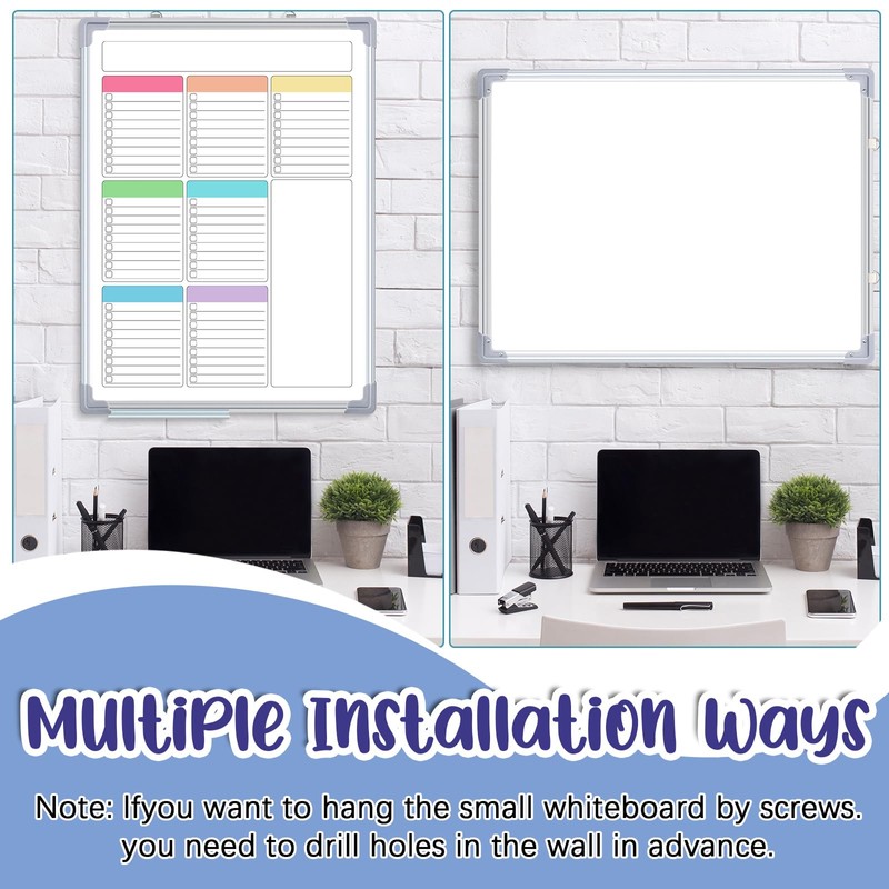 - Package Includes: 24 x 18 inches/60 x 45 cm double-sided weekly plan dry erase board set, including 8 different color magnetic dry-erase pens and a dry-erase, the smooth and sturdy surface makes it easy to write and clean, suitable for walls, office desks, study tables, nightstands, and kitchen counters; Double-sided wall portable small magnetic dry-erase whiteboard frame, strong and durable, lightweight, suitable for handheld use