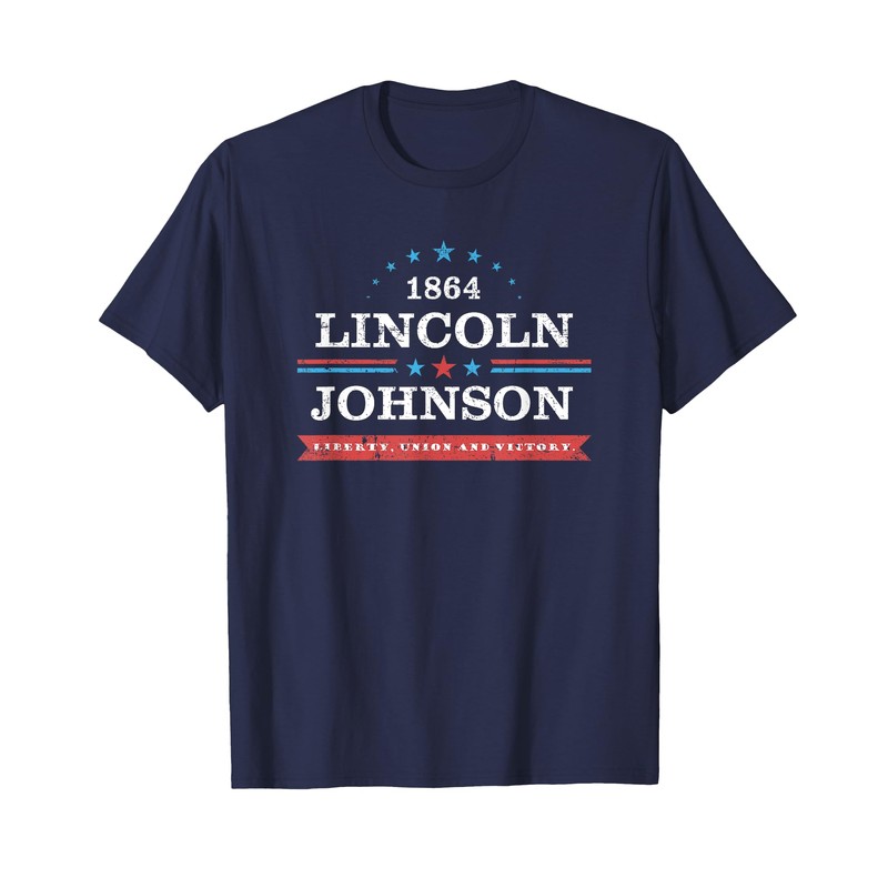 • Funny Lincoln Johnson 1864 ticket tee shirt. Civil war and reconstruction era United States History. Lincoln and history buffs. Presidential history and United states elections. Early Republican Party. Mens Lincoln Shirt. Womens Lincoln shirt. Great shirt