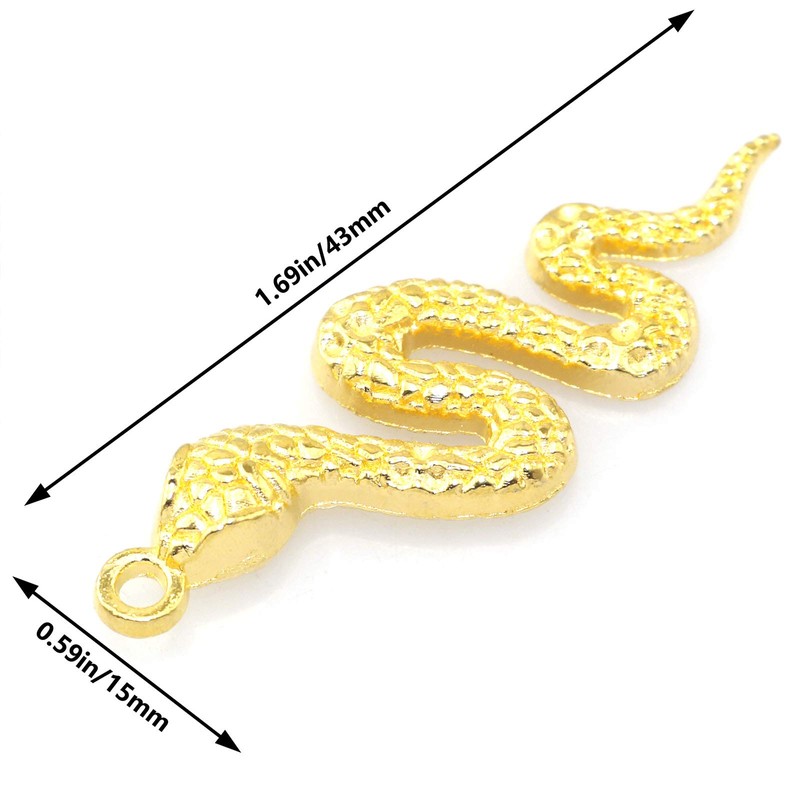 Name: Snake Charms Pendants Size: 43*15mm (1.69*0.59in) Aperture: 2mm Material: Alloy Color: golden