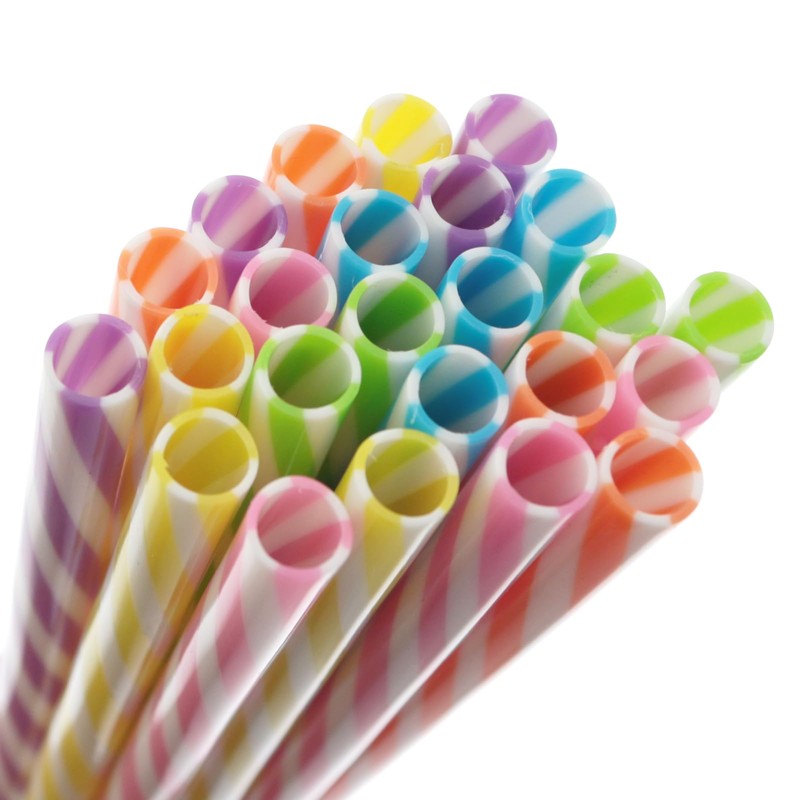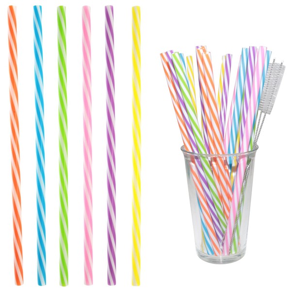 Lind Kitchen Bicolor Spiral Stripe Reusable Plastic Straight Straws Colorful 9in + Brush