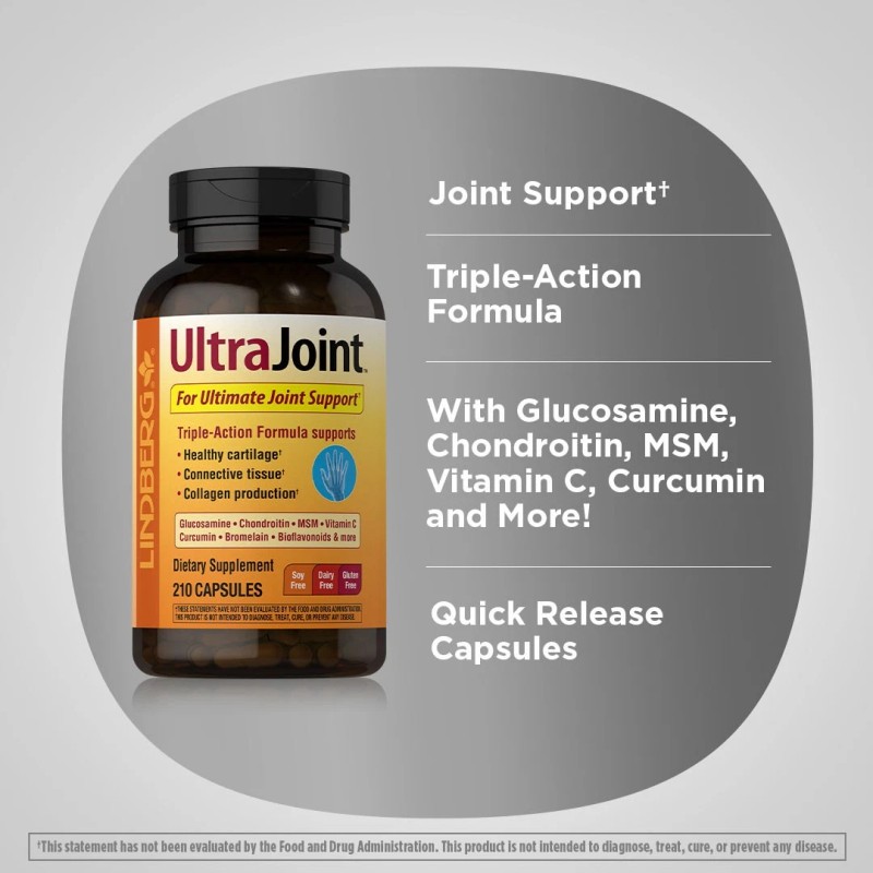 Lindberg’s UltraJoint Joint Supplement is a powerful trademarked formula designed for joint support.** It offers a quality blend of ingredients including herbs and antioxidant compounds. We did extensive research to gather top ingredients from the finest sources to use for the best possible formula including Vitamin C, MSM, Chondroitin, and more. It is complete with a synergistic blend of nutrients you may not be getting from diet alone. Convenient capsules provides support from Bromelain, Ultra Bioflavonoid blend, Tart Cherry Extract, and more. Pick up a bottle today and see why men and women love this supplement!