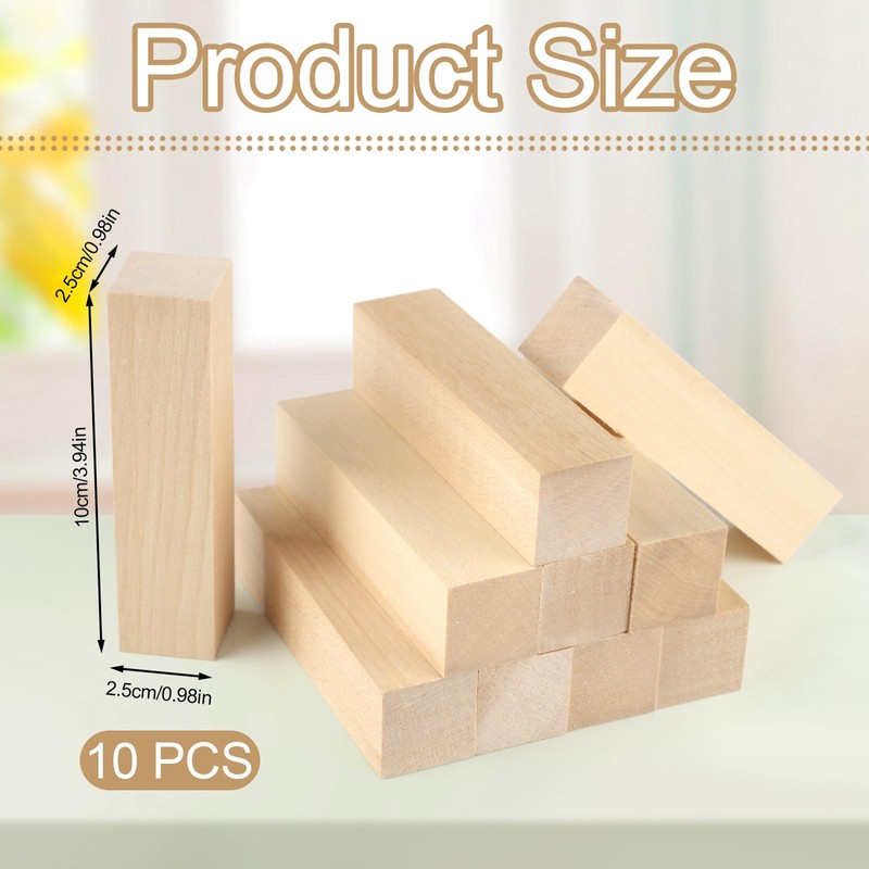 Linden Carving Wood, Pack of 10 Basswood for Carving, 10 x 2.5 x 2.5 cm Wooden Block, Carving Wood Blanks for Turning and Wood Carving, Carving Wood for Children