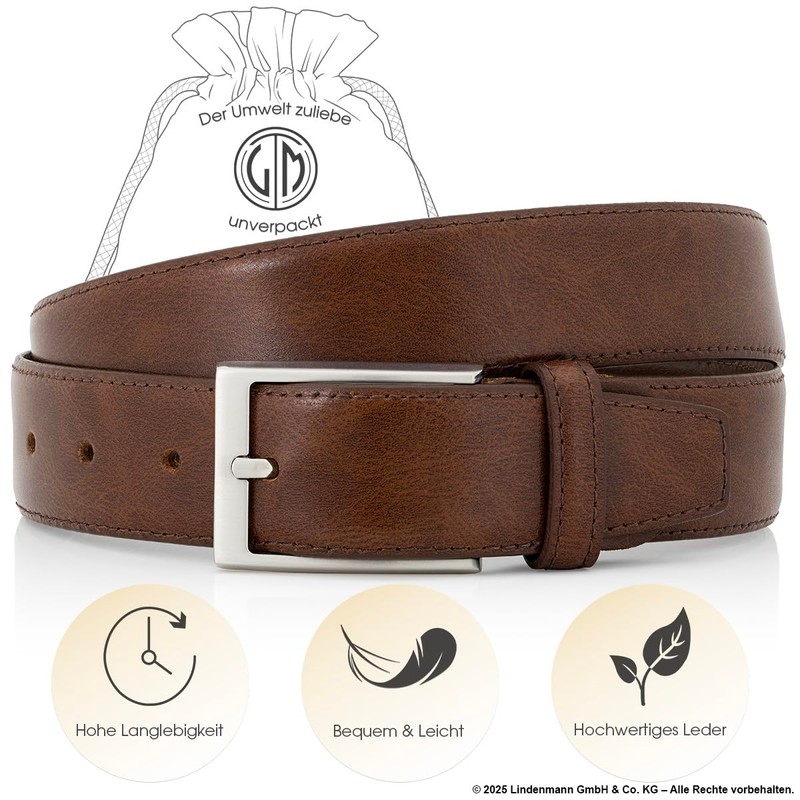 LINDENMANN Men's Leather Belt, Cowhide Belt, XL Cambered, Mogano, Size: 135