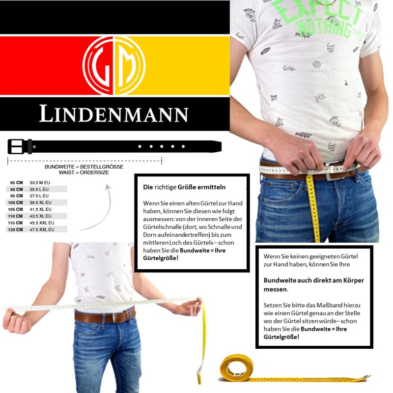 LINDENMANN Men's Leather Belt, Full Cowhide Leather, Buffalo Leather, 4 mm, in 3 Colours, Cognac/Dark Brown/Black, beige