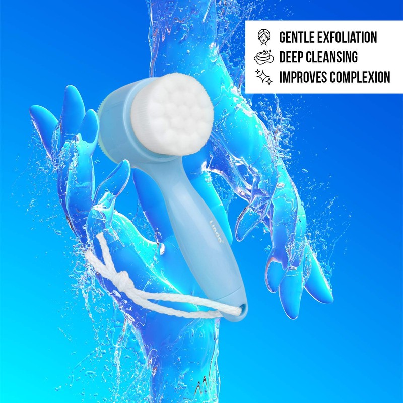 Lindo Face Cleansing Brush - 2-in-1 Facial Cleanser (Gentle and Deep Clean) (Blue)
