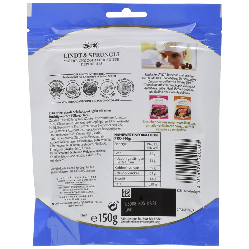 Lindt Sensation Fruit, Blueberry & Acai, Pack of 4 (4 x 150 g)