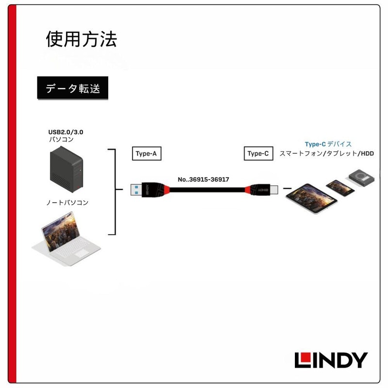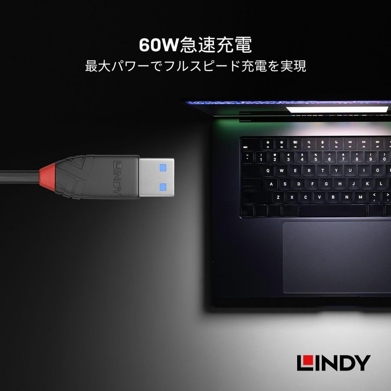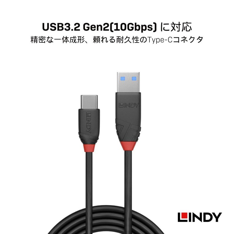 LINDY 0.5m BLACK LINE USB3.2 Gen2 Type-C to Type-A Cable (Model Number: 36915)