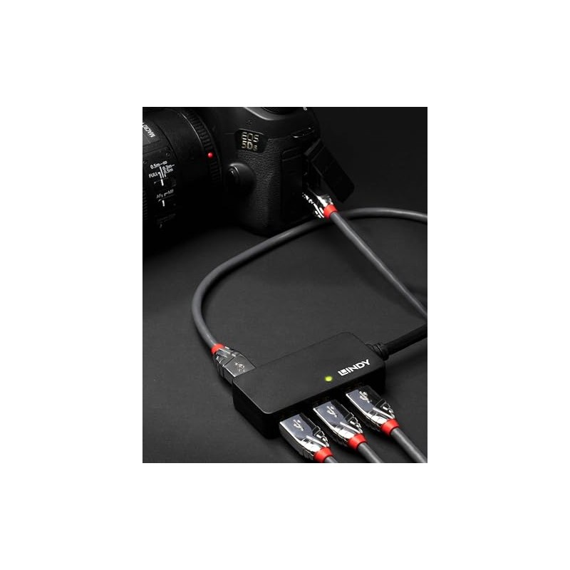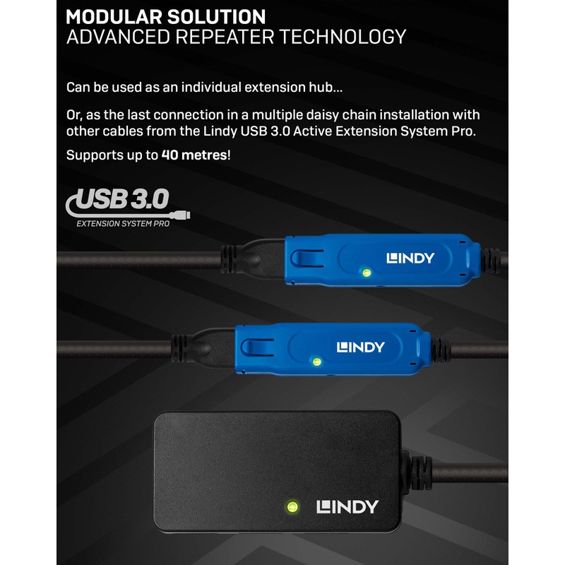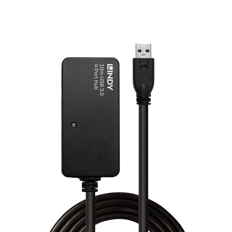 Lindy 10m USB 3.0 Active Extension Hub with 4 Ports, Supports 5Gbps Transfer Rate, Compatible with Desktops and Laptops