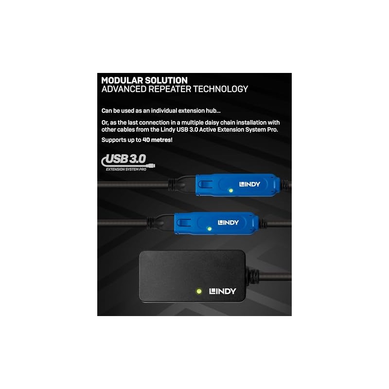 - connect to either 43158 or 43157 to extend your usb 3.0 active extension system up to 18, 28 or 38m