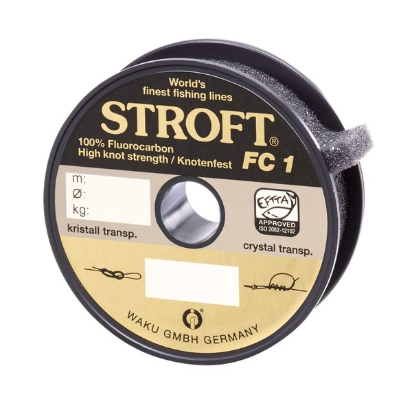 The 100% fluorocarbon fishing line with the highest breaking strain that has yet been tested by the EFTTA. With productiontuned knot strength as well as many other advantages such as high resistance to abrasion, high density, sensitivity, high feed-back, castability (tippet), durability, and low visibility, the STROFT FC1 is ideal for all angling-leader needs. It can also be used as a main line, regrettably at a price.