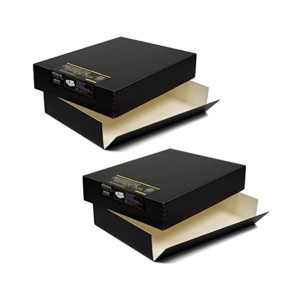 Lineco, 11x14 Museum Storage Box Black, Archival Quality Acid-Free Buffered Drop Front Design with Metal Edges Removable Lid, 11 1/2x15x3 In (2 Pack)