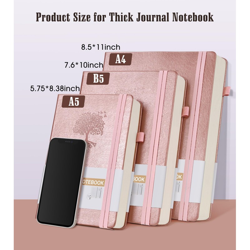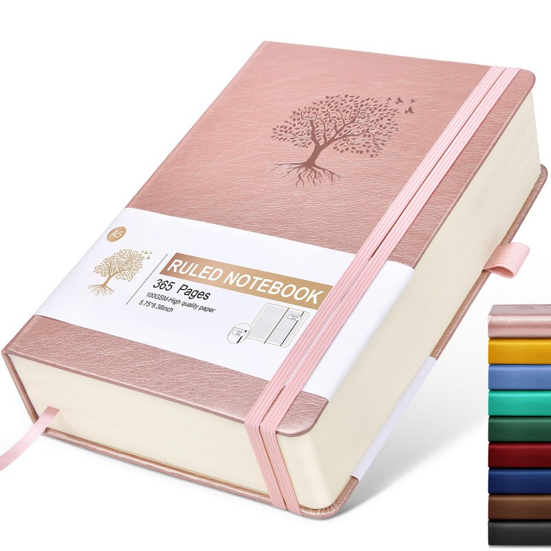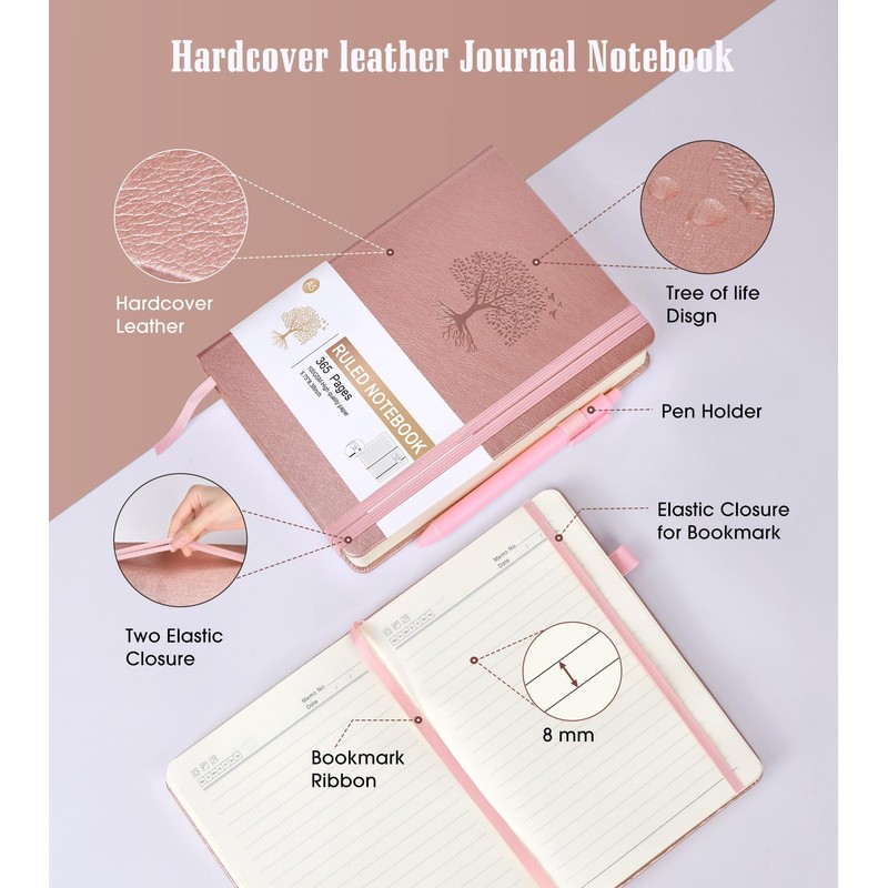 Lined Journal Notebook -365 Pages A5 Thick Journals for Writing Ruled Notebook, Pink Hardcover Leather Journals for Women Men, Daily Journal Notebook for Work, Note Taking (5.75'' X 8.38'' Rose Gold)