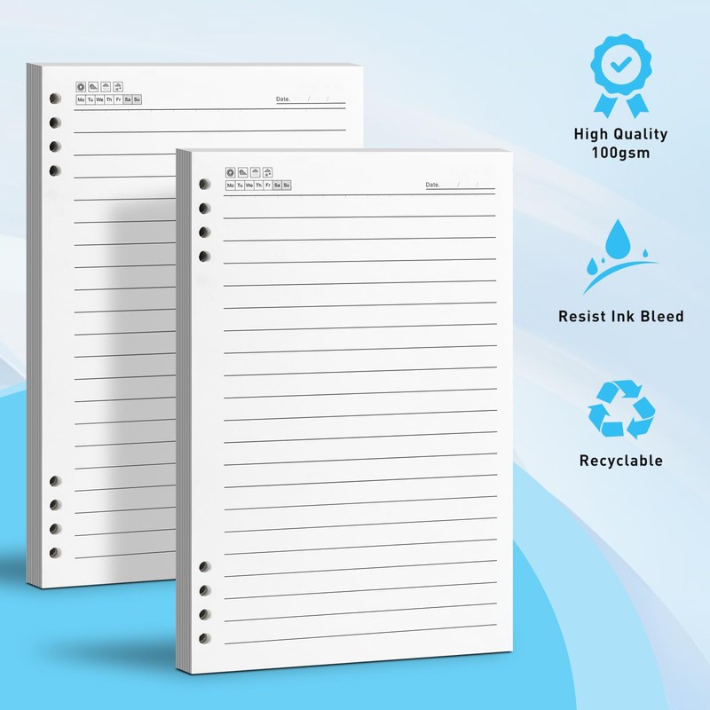 Lined Refill Paper, 240 Pages Loose Leaf Paper for A5 Binder 8 Ring Refillable Journal, 100GSM 120 Sheets Paper Inserts for Refillable Binder Planner 5.7”x8.3”