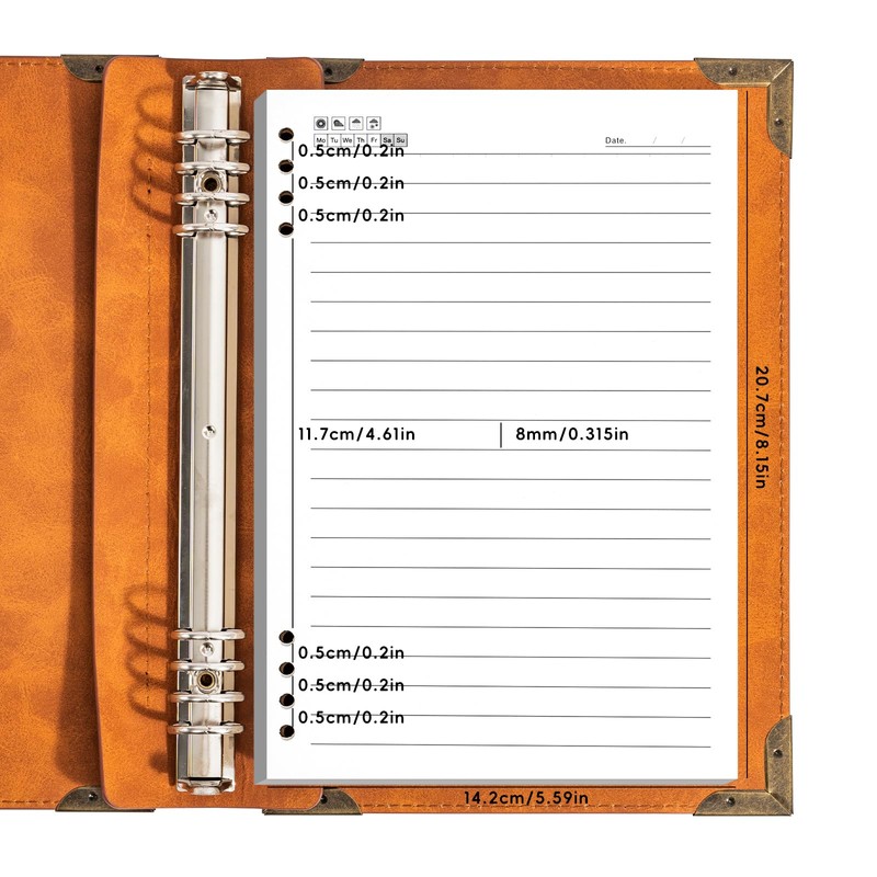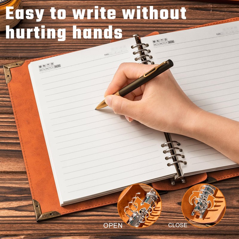- VERSATILE USE: The binder cover measures 6.81 x 9.17 inches and contains 240 pages (120 sheets) of 100 GSM thick A5 lined journal paper, so you can use most pens, pencils, and markers without worrying about heavy shadows and bleed-through. This loose-leaf journal is perfect for taking notes, planning, journaling, work schedules and more.