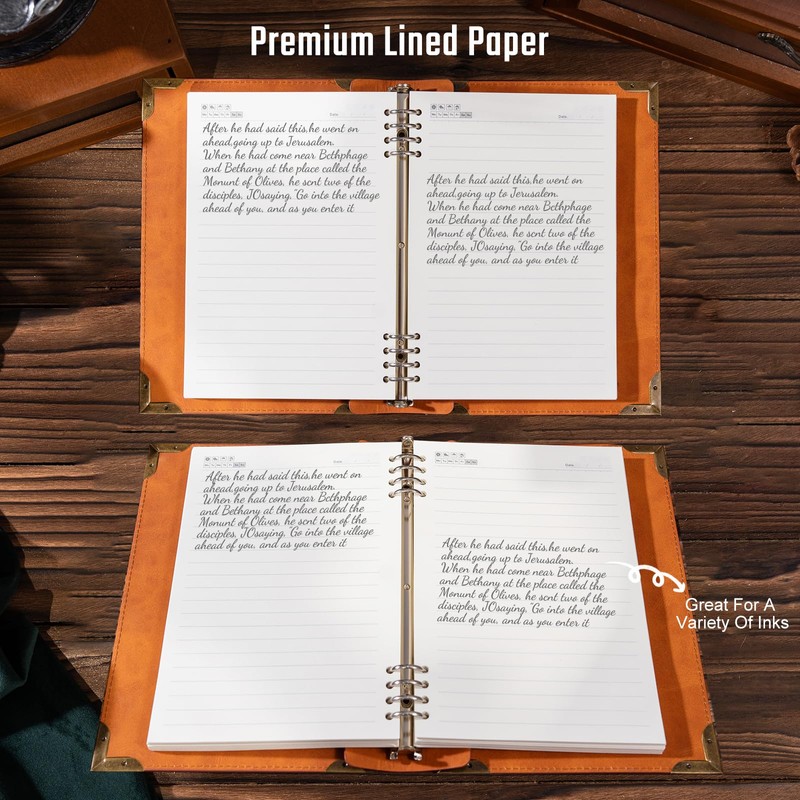 - PROFESSIONAL DESIGN: This A5 refillable notebook binder features an 8-ring design that ensures a 180° flat surface, which is more in line with writing habits and no longer pinches your hand. High-quality leather protects the rings and inner pages from damage and destruction.