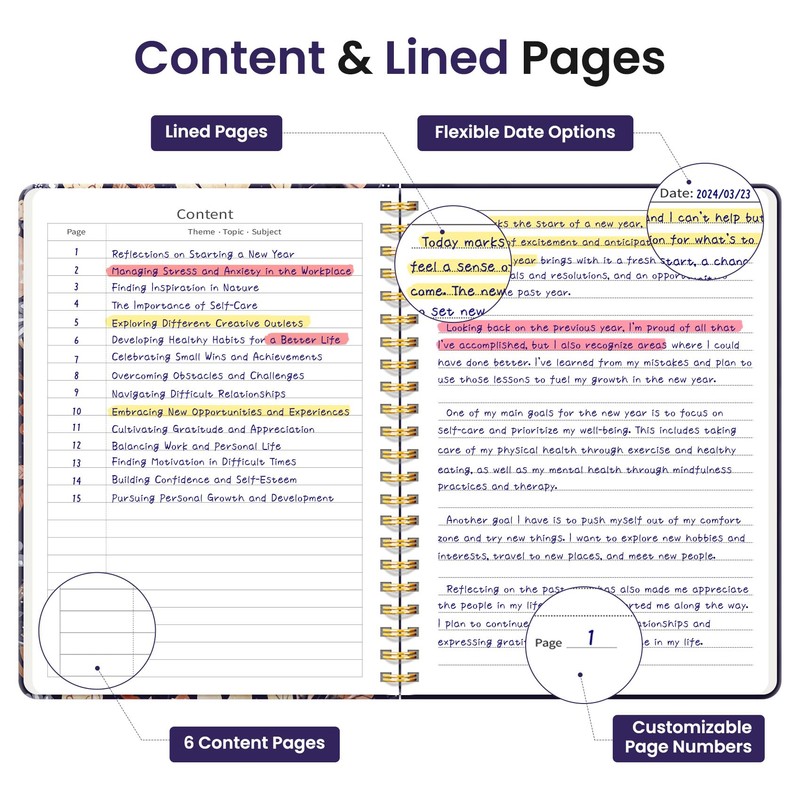 - Organized and Functional Design: With 140 lined pages and a 6-page blank table of contents, our notebook offers ample space for note-taking and easy referencing. An inner pocket keeps miscellaneous items secure, and an elastic closure band ensures the notebook stays closed when not in use.