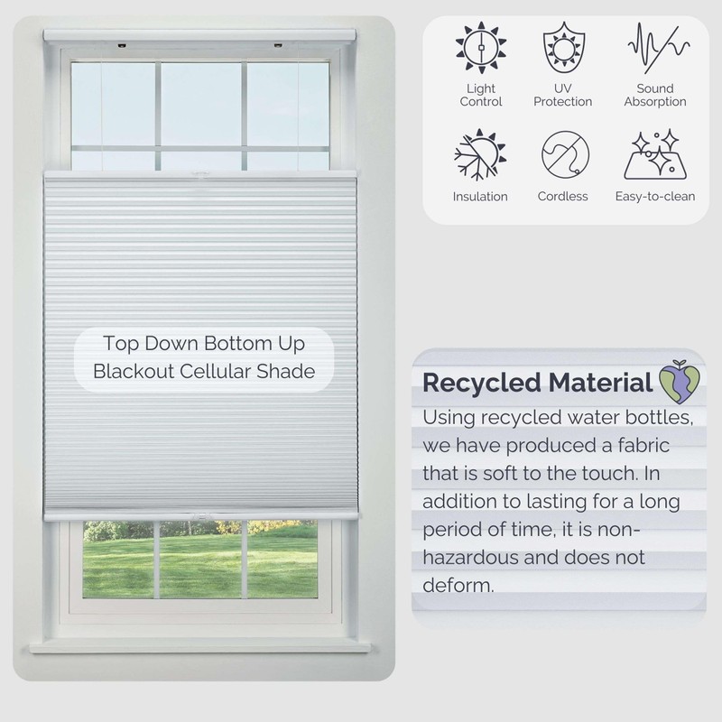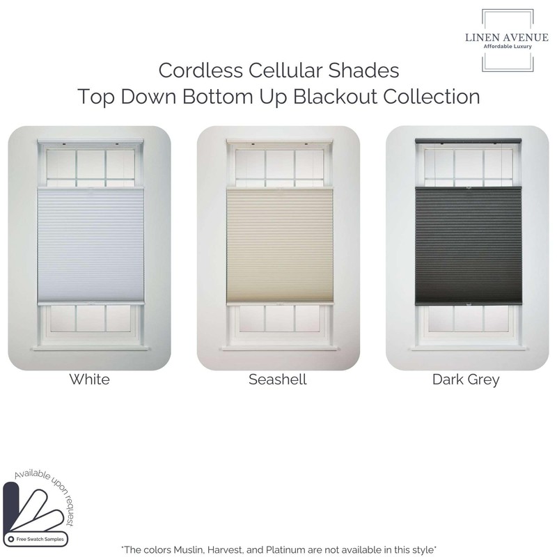 Linen Avenue Cordless Cellular Top Down Bottom Up Blackout Shade 25 W x 66 H, White (Arrives 1/4" Narrower)