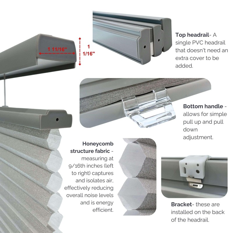 - | ENERGY EFFICIENT | Made with a durable, long-lasting 100% polyester material that provides privacy, UV protection, glare reduction, and fading prevention for furniture and carpets. The 9/16th inch honeycomb shade design provides energy efficient insulation and sound absorption.