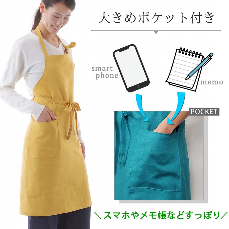 - 【Glossy Design with Pockets】 There are large pockets on the left and right to hold your smartphone, notepads, etc. It is also designed to increase the position of the waist to create a neat and vertical silhouette. This stylish apron has a beautiful sheen unique to linen and looks elegant and beautiful