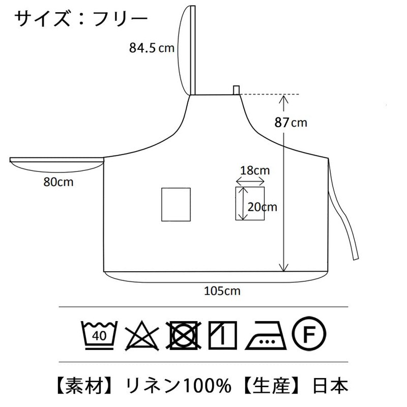 - Size: One size fits all: Total length: 34.3 inches (87 cm), Body width: 41.3 inches (105 cm), Waist strap: 31.5 inches (80 cm); Material: 100% linen. Country of origin: Japan. Care instructions: Machine wash delicate cycle or hand wash. Shrink drying. Eliminates the hassle of ironing by straightening it in wet condition and drying it in shade