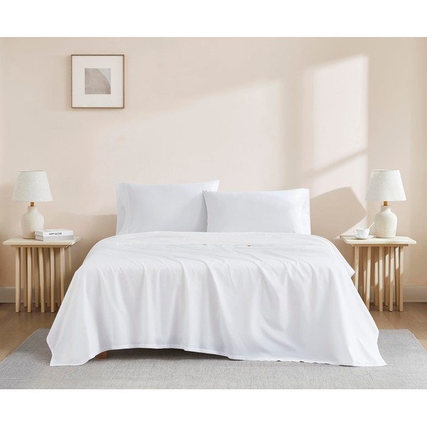 Linen Closet Luxury Cotton 144 Thread Count Organic Cotton 4-Piece Sheet Set, Full, Arctic White