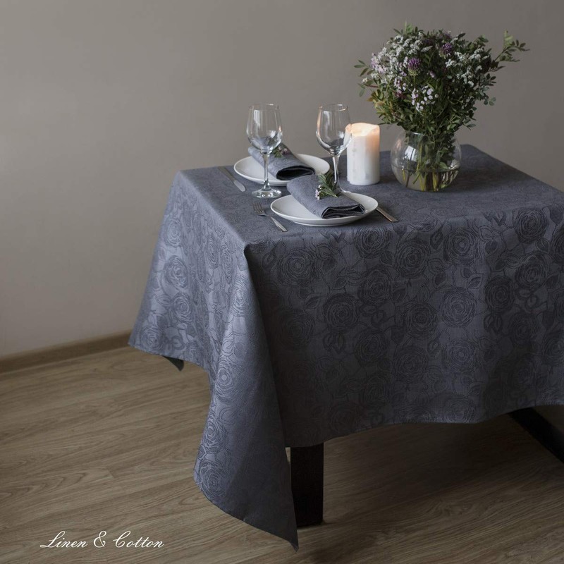 - Finest Quality Linen & Cotton Tablecloth ROSEUS With a Classic Damask Woven Pattern Will Smoothly Complement any Dining Table Setting