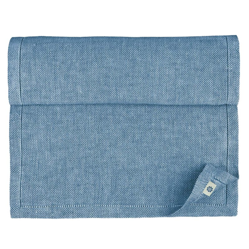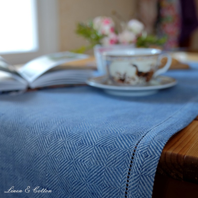 Linen & Cotton Luxury Hemstitched Table Runner SCANDI, 100% Linen - 44 x 270cm (17.6'' x 108''), Blue