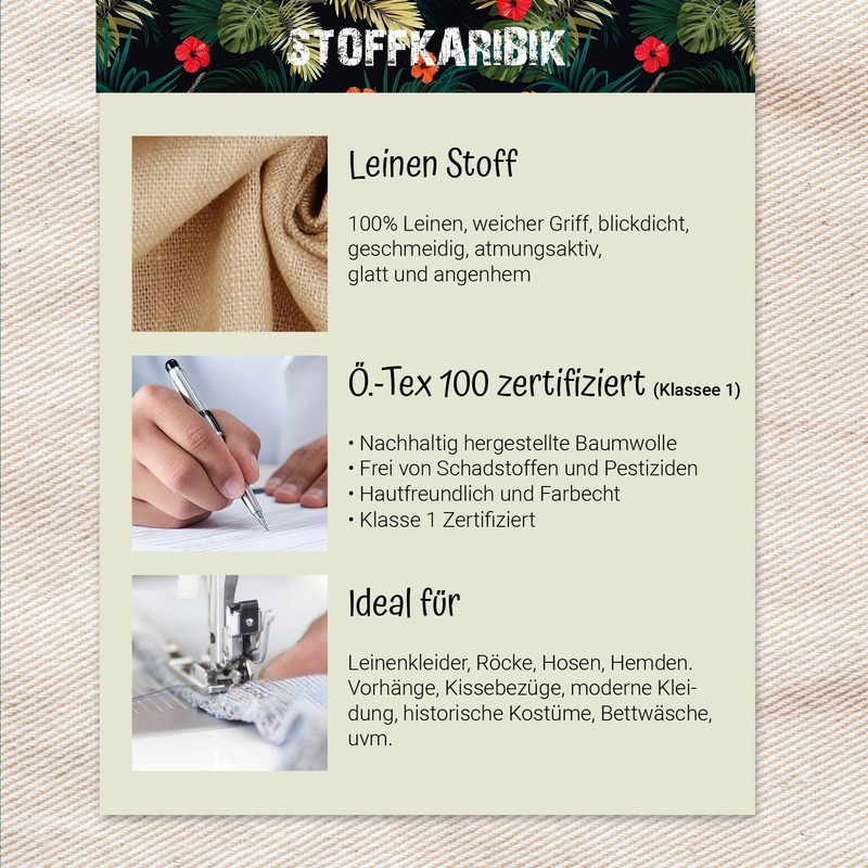 • 100% natural linen - soft & breathable - opaque, skin-friendly fabric with cooling effect - perfect for linen clothing such as shirts, dresses, skirts or historical costumes.